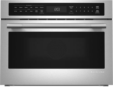 The 24" Built-In More-In-One Convection Microwave Speed Oven combines the speed of microwave cooking with the quality baking and browning of a convection oven. Multifunction Oven Modes for Air Fry, Bake, Grill and Roast maximize versatility. Plus, the drop-down door design matches your KitchenAid® wall oven, and the included trim kits ensure a seamless fit in 24", 27" or 30" cutout sizes.Read More